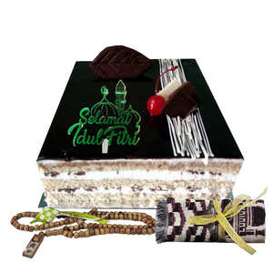 Cake ini sangat cocok untuk kalian berikan untuk keluarga, sahabat, pasangan, rekan kerja sebagai hadiah di momen Hari Raya Idul Fitri. Rasa dari cake ini adalah Basic Cake Nutella dengan Finishing on Top Photo Printing. Dilengkapi Sajadah Sholat, Tasbih Kayu 99 Butir, serta Ornamen Ketupat.