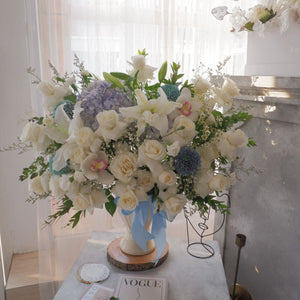Kombinasi mewah dari Bunga Mawar, Bunga Baby Breath, Bunga Anggrek, Bunga Lily, Bunga Aster, Bunga Peony, Bunga Caspia, Bunga Hydrangea dan Daun Filler.