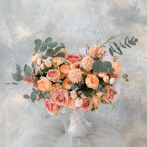 Kombinasi mewah dari Bunga Mawar, Bunga Krisan, Bunga Caspia dan Daun Eucalyptus.