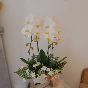 Kombinasi mewah dari Bunga Anggrek, Bunga Aster dan Daun Filler.