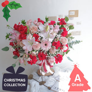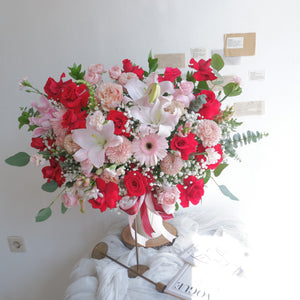Kombinasi mewah dari Bunga Mawar, Bunga Baby Breath, Bunga Peony, Bunga Lily, Bunga Gerbera, Daun Eucalyptus dan Daun Filler.