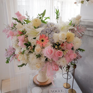 Isi Vase : Bunga Mawar, Bunga Baby Breath, Bunga Aster, Bunga Lily, Bunga Peony, Bunga Krisan, Bunga Hydrangea, Daun Fern dan Daun Filler.