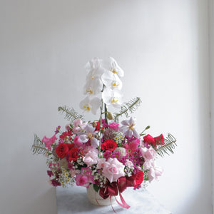 Kombinasi mewah dari Bunga Mawar, Bunga Baby Breath, Bunga Anggrek, Bunga Aster, Bunga Krisan, Bunga Gerbera, Bunga Peony dan Daun Filler.