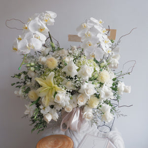 Kombinasi mewah dari Bunga Mawar, Bunga Baby Breath, Bunga Anggrek, Bunga Lily, Bunga Krisan, Bunga Hydrangea dan Daun Eucalyptus.