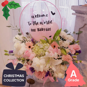 Kombinasi indah dan mewah dari Bunga Mawar, Bunga Peony, Bunga Baby Breath, Bunga Gerbera, Bunga Hydrangea, Bunga Krisan, Bunga Lavender, Bunga Caspia, Balon (Customize) dan Daun Filler.