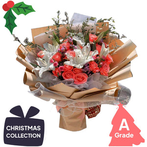 Kombinasi mewah dari Bunga Mawar, Bunga Lily, Bunga Baby Breath, Bunga Caspia dan Daun Eucalyptus.