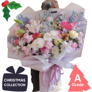 Kombinasi mewah dari Bunga Mawar, Bunga Lily, Bunga Snapdragon, Bunga Anggrek, Bunga Krisan, Bunga Peony, Bunga Gerbera, Bunga Mini Krisan dan Daun Fern.