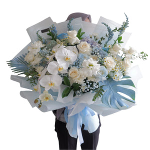 Isi Buket : Bunga Mawar, Bunga Snapdragon, Bunga Aster, Bunga Peony, Bunga Anggrek, Bunga Hydrangea Bunga Baby Breath, Daun Eucalyptus dan Daun Monstera.