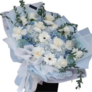 • Kombinasi mewah dari Bunga Mawar, Bunga Peony, Bunga Gerbera, Bunga Baby Breath dan Daun Eucalyptus.