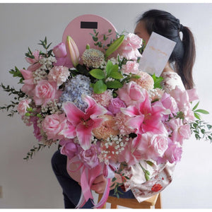 Isi Box : Xtra Large - Bunga Mawar, Bunga Hydrangea, Bunga Krisan, Bunga Lily, Bunga Baby Breath dan Daun Filler.